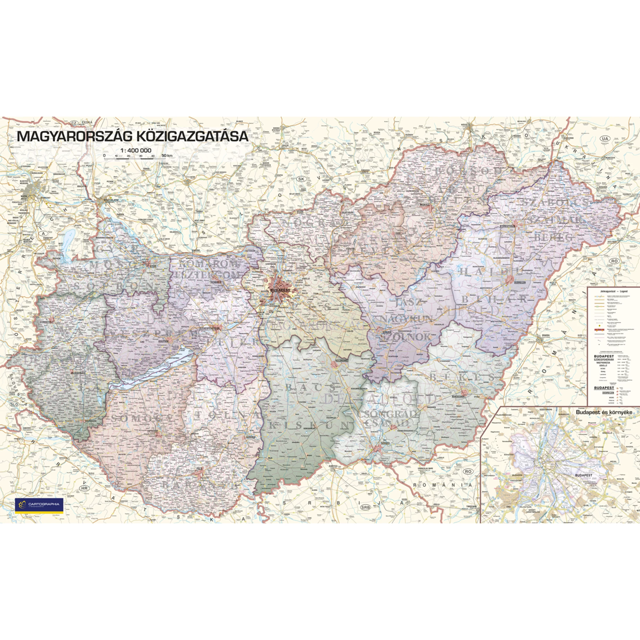Magyarország közigazgatása falitérkép a Cartographia-tól.  Választható méretben és kivitelben, rendelésre is.