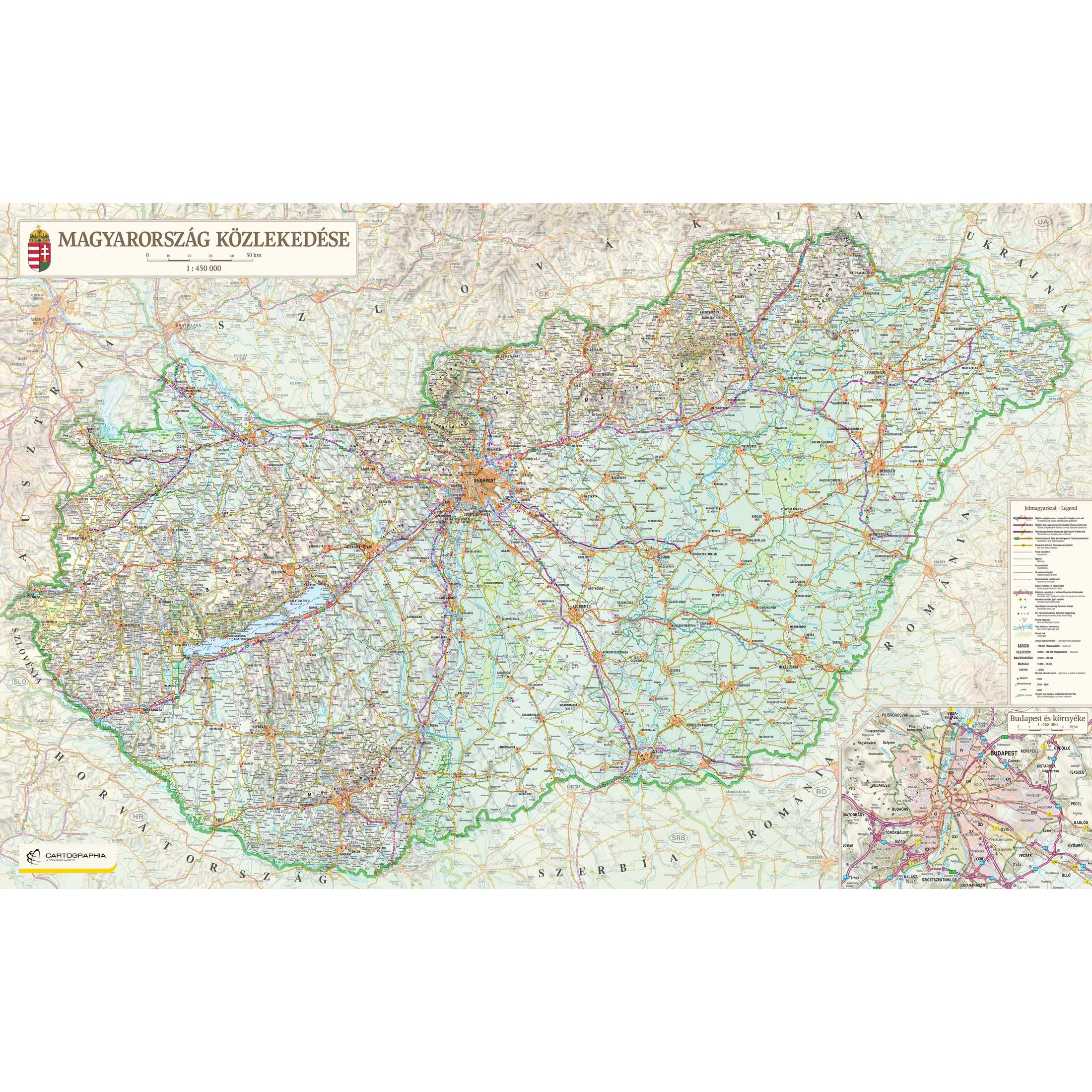 Magyarország közlekedése falitérkép választható méretben és kivitelben, rendelésre is.