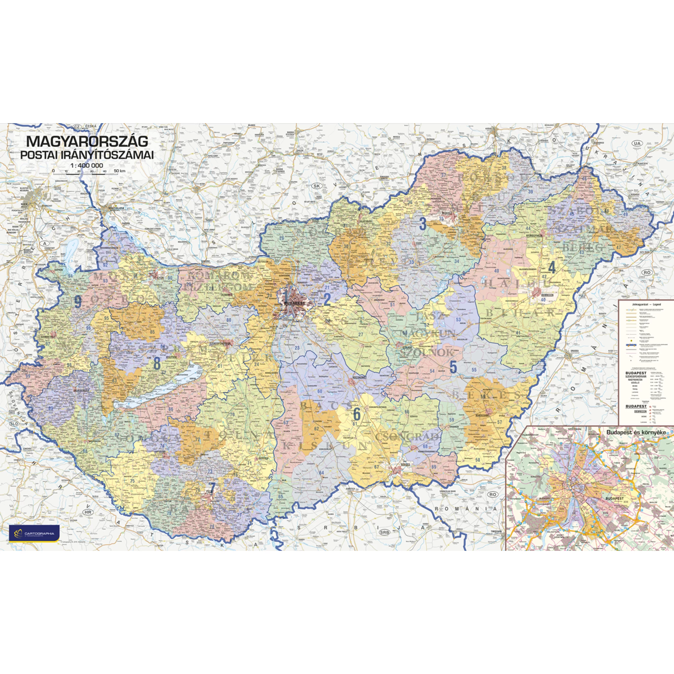 Magyarország postai irányítószámai falitérkép választható méretben és kivitelben, rendelésre is.