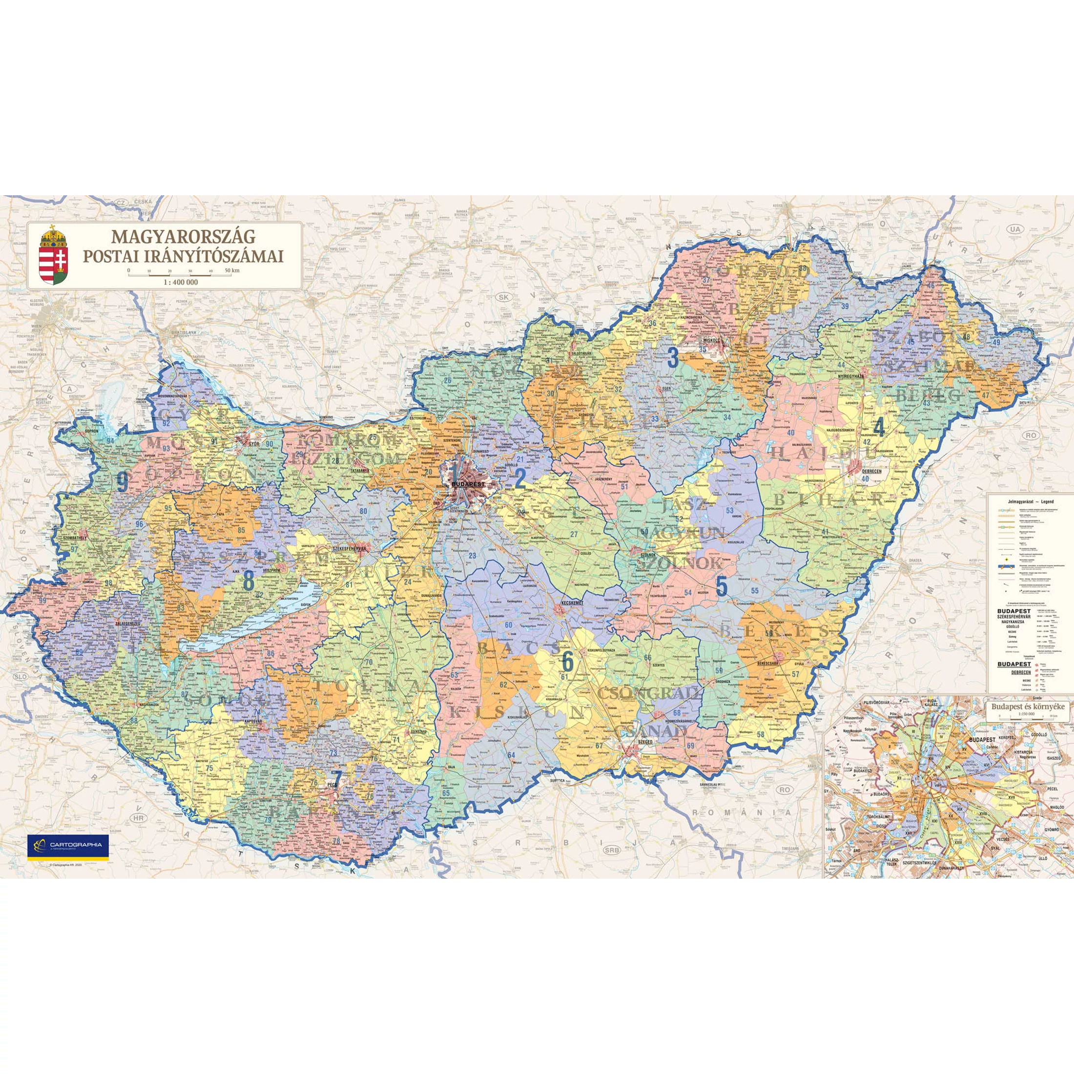 Magyarország postai irányítószámai falitérkép választható méretben és kivitelben, rendelésre is.