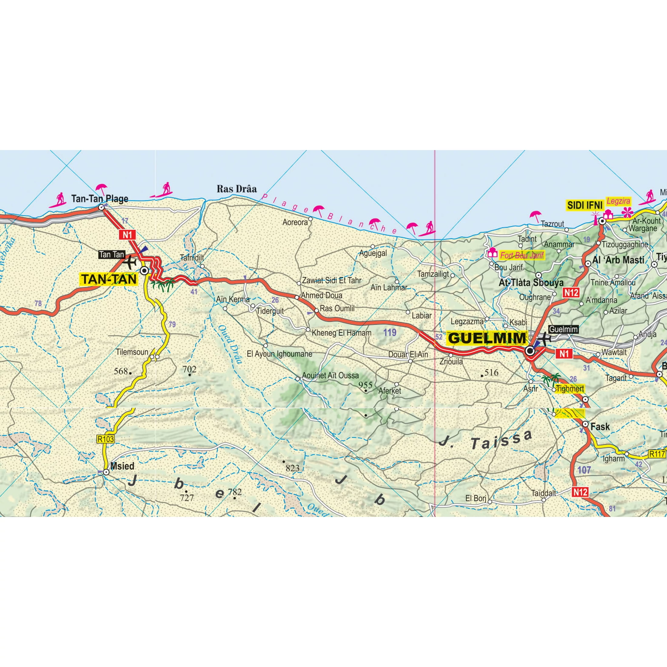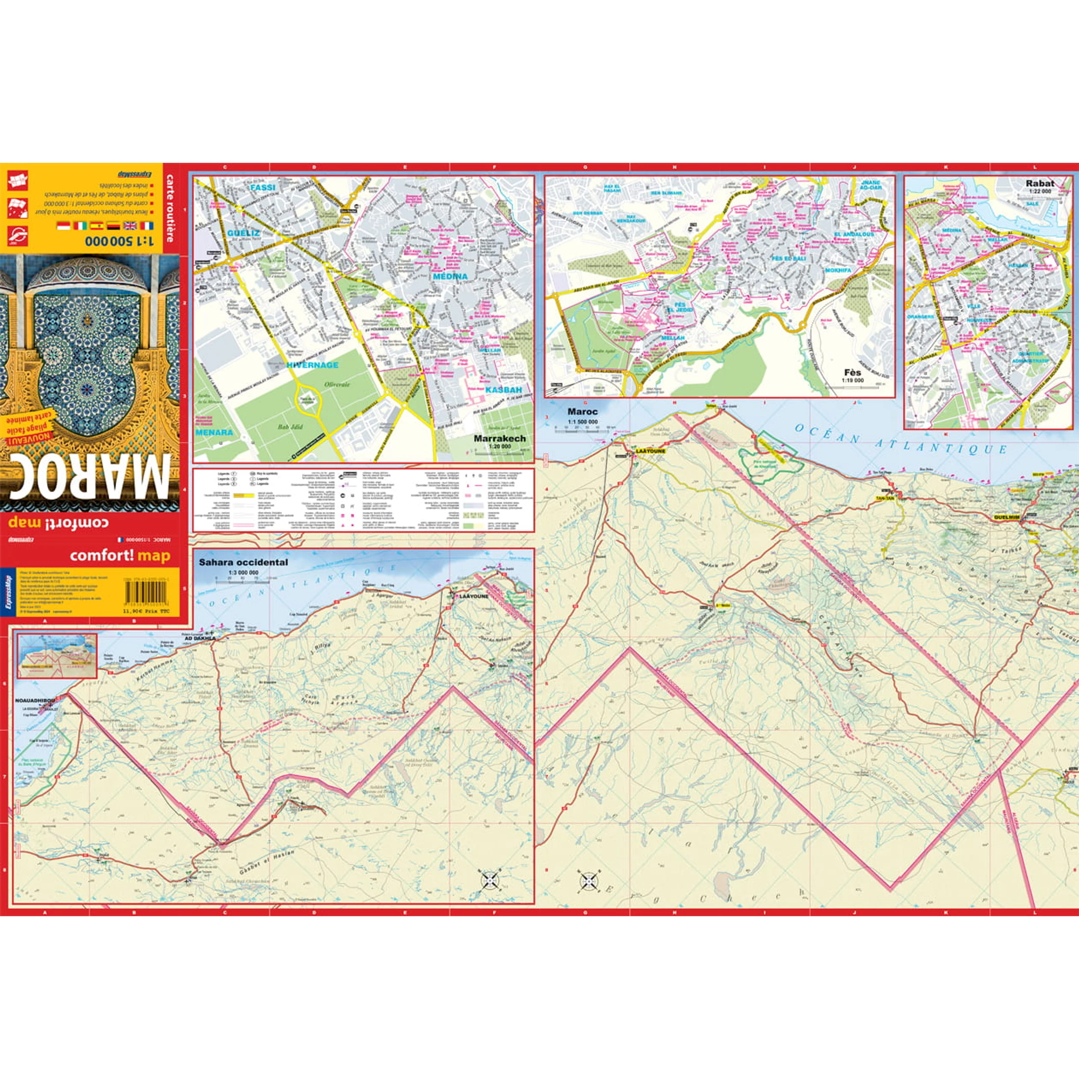 Tartalmazza: Rabat (1:22 000) , Marrakes (1:20 000) , Fés (1:19 000) várostérképeit valamint Nyugat Szahara (1:3 000 000) térképét.