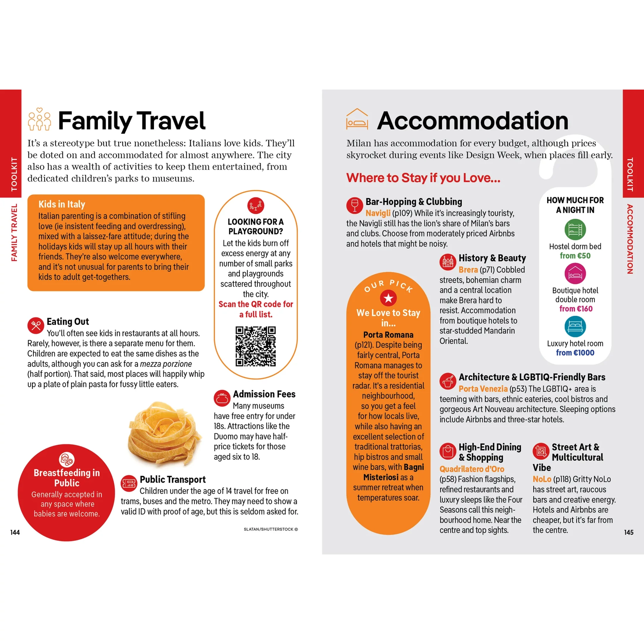 • Covers: Duomo & San Babila; Quadrilatero d'Oro & Porta Venezia; Brera & Parco Sempione; Porta Garibaldi, Isola & Chinatown; Corso Magenta & Sant'Ambrogio; Ticinese, Navigli & Tortona; Porta Romana & Porta Vittoria