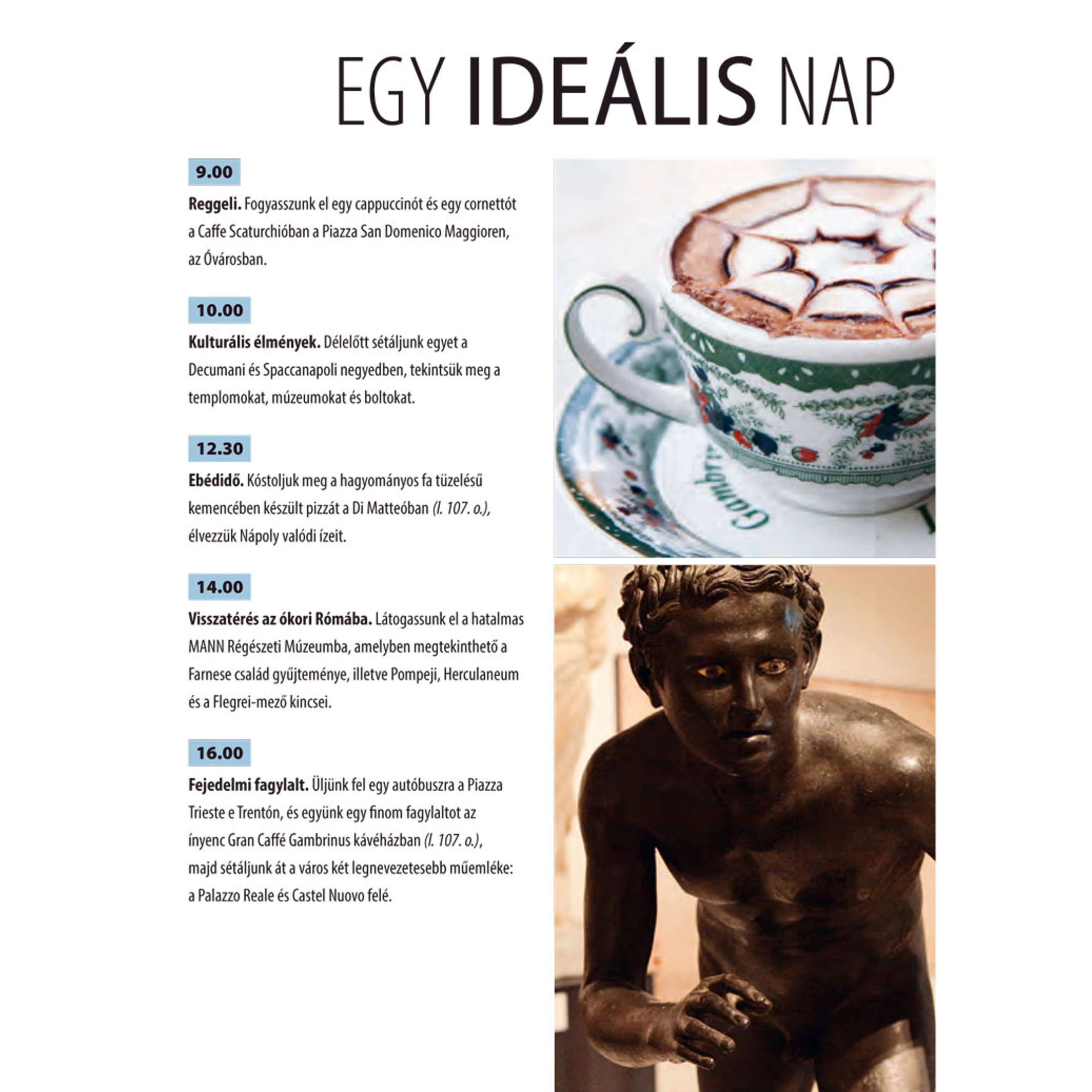 Maga a város figyelemre méltó élő múzeum. Kincseinek felfedezése olyan kaland, amely a híres öböltől a forgalmas, gépkocsikkal zsúfolt utcákon és szűk sikátorokon át magasan a város fölé vezet. Készüljön fel a gyaloglásra, mert akár Nápolyba, akár az ókori Pompejibe vagy a még régebbi Paestumba látogat, ezeknek a helyeknek a különleges hangulatát leginkább gyalogosan lehet élvezni. Útikalauzunk megkönnyíti a legérdekesebb helyek felfedezését, és gyakorlati tanácsokat is ad, amelyek jól jöhetnek az utazás során.