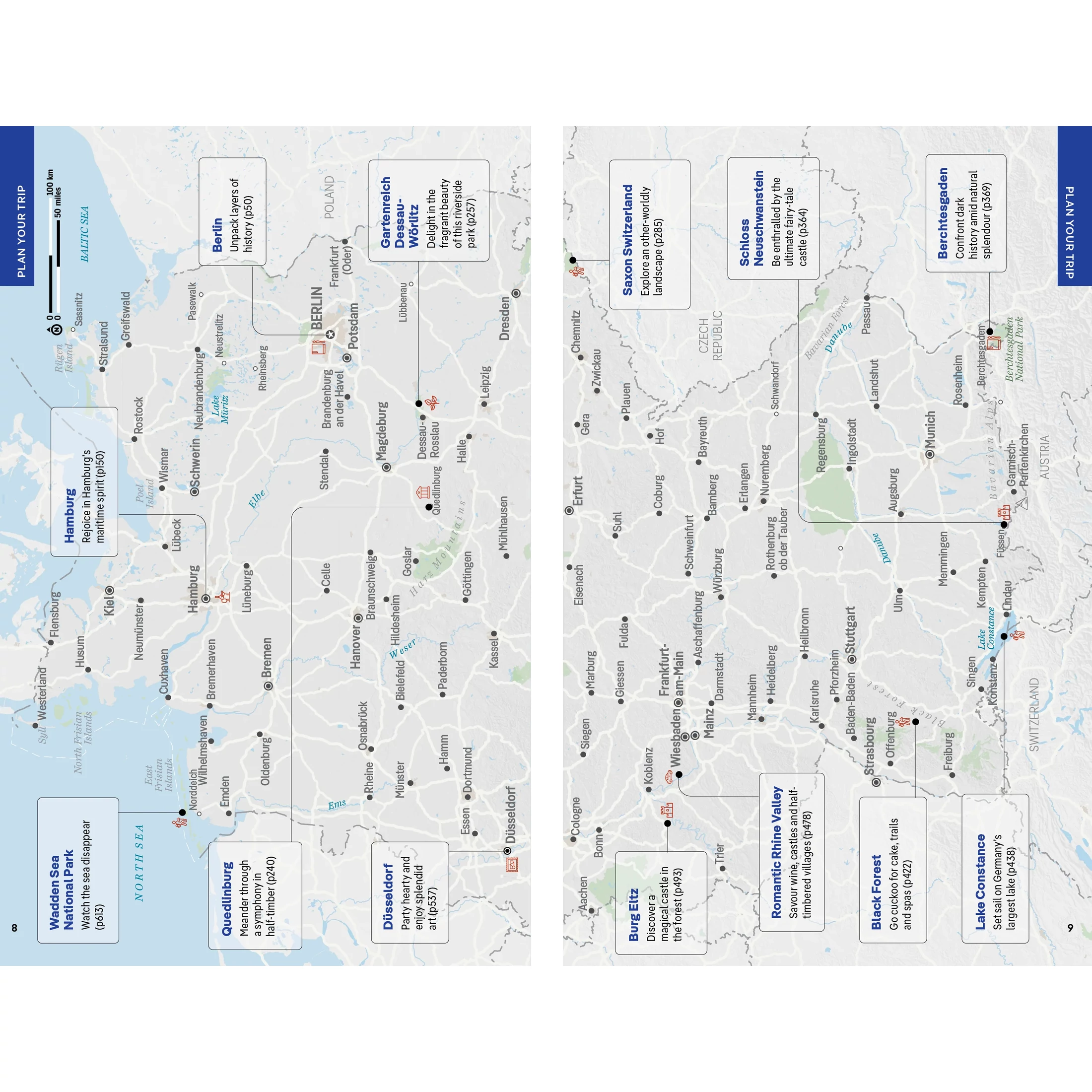 Berlin, around Berlin, Hamburg & the North, Central Germany, Saxony, Munich, Bavaria, Stuttgart & the Black Forest, Frankfurt & Southern Rhineland, Cologne & Northern Rhineland, Lower Saxony & Bremen