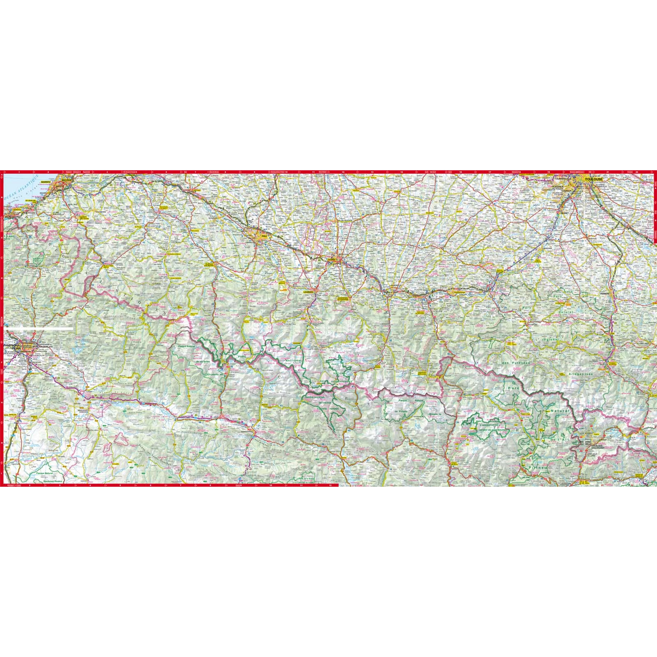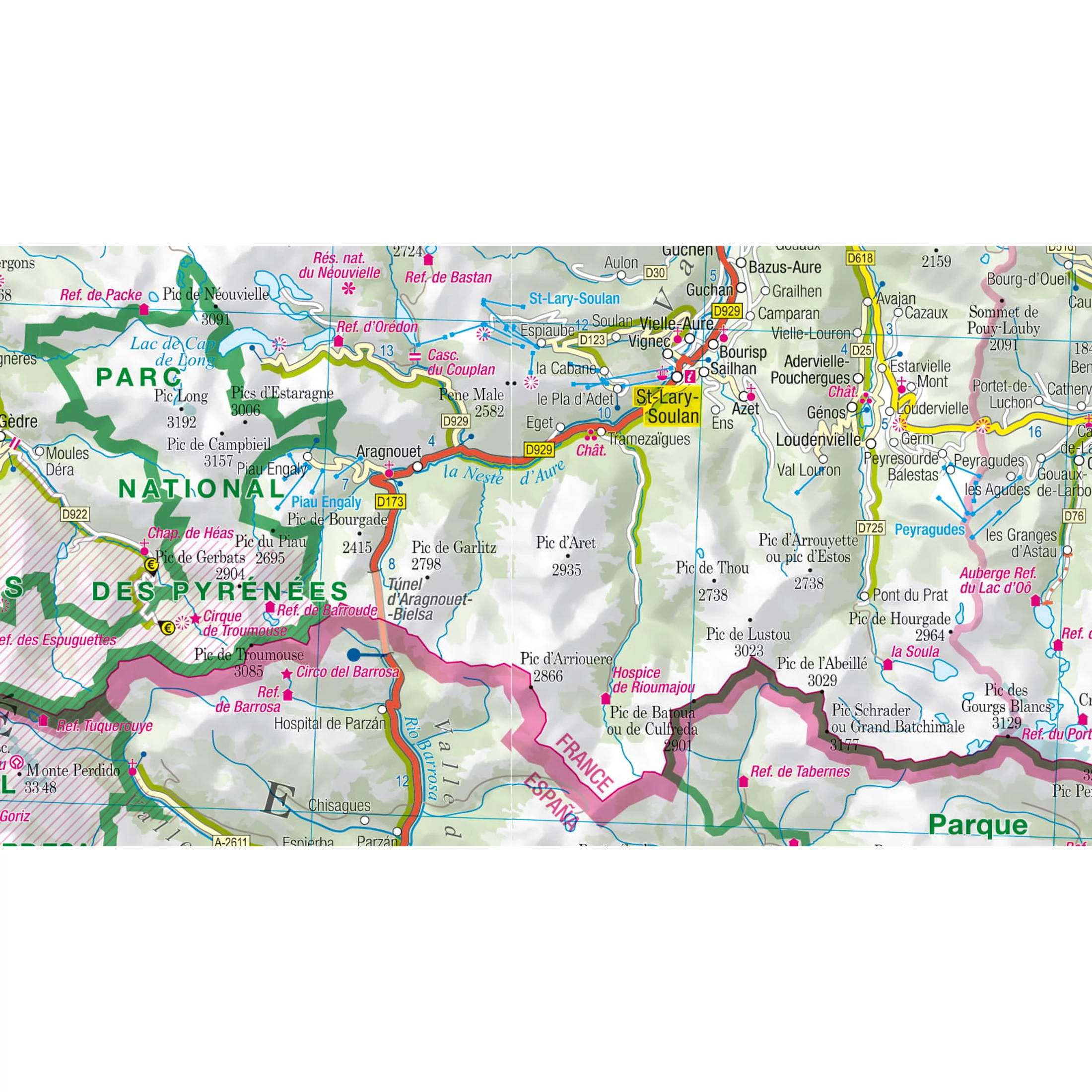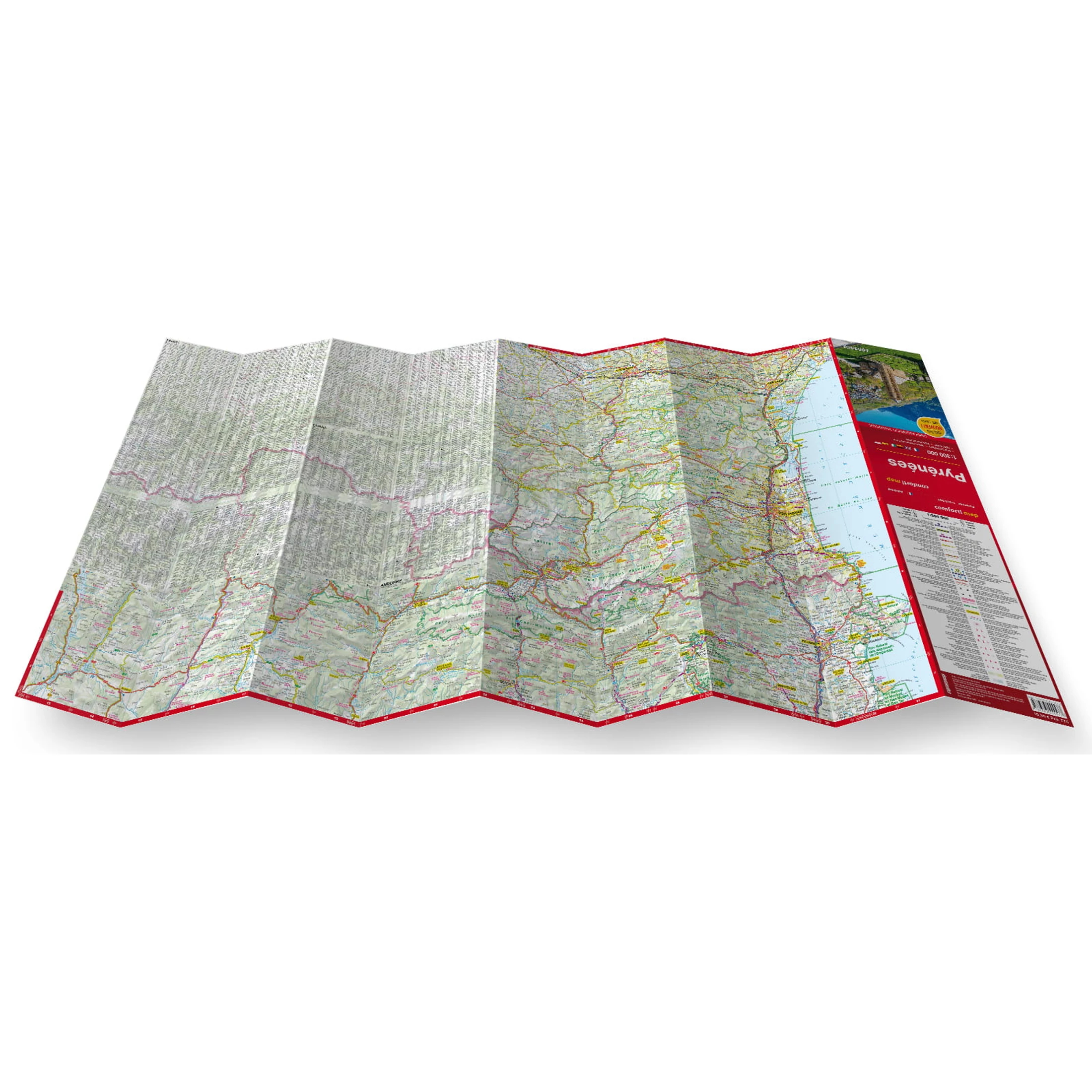 Spanyolország és Franciaország természetes határát képező Pireneusokat mutatja be a térkép. Könnyen hajtogatható, laminált térkép, látnivalókkal.