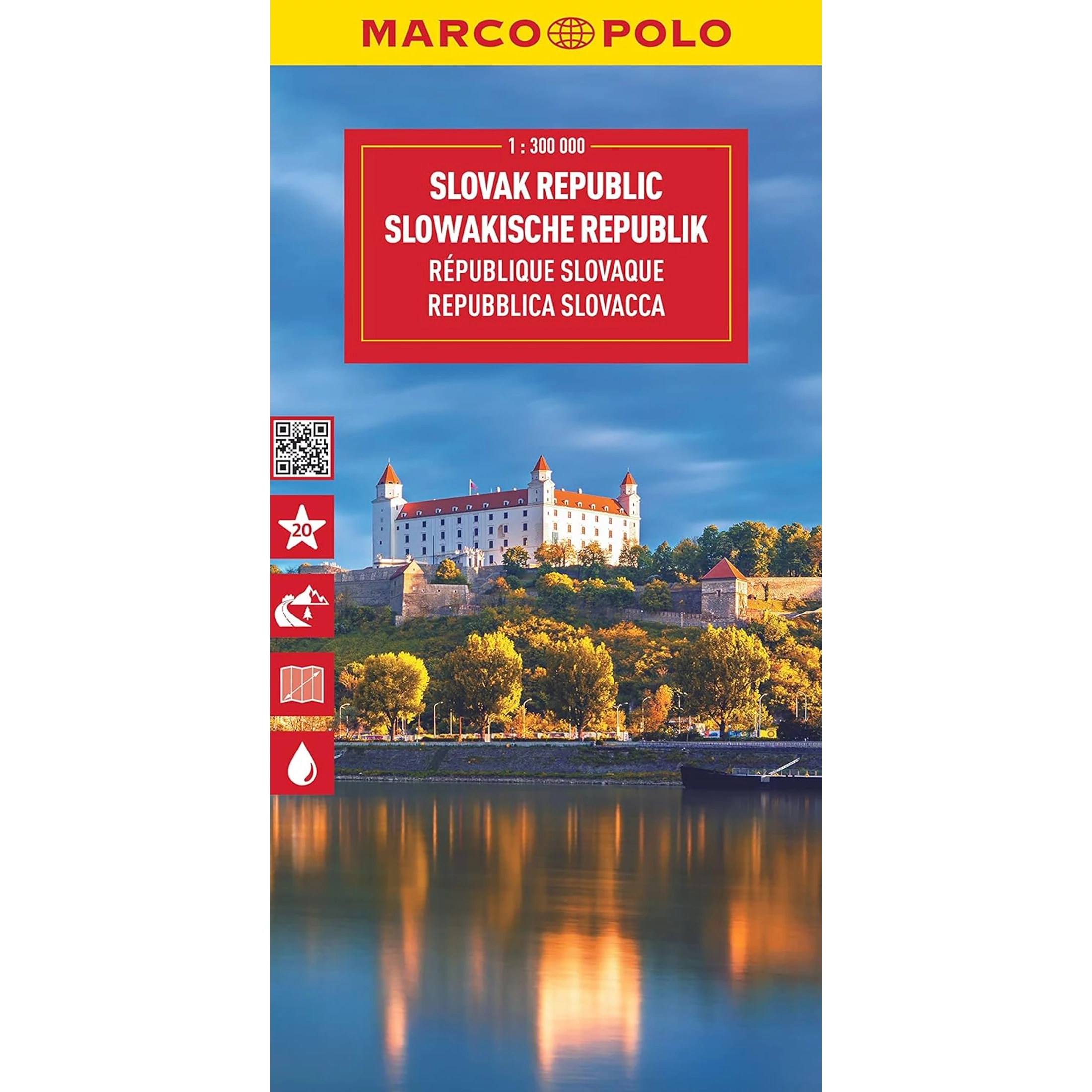 Szlovákia kétoldalas hajtogatott térképe úti információkkal, többnyelvű jelmagyarázattal (SK, D, GB, F, I, E, CZ, PL), látnivalókkal és névjegyzékkel. Tartalmaz: - Fő térkép 1:200 000 - Várostérkép: Banská Bystrica, Bratislava, Kosice, Nyitra, Poprád, Presov, Trencsén, Zsolna