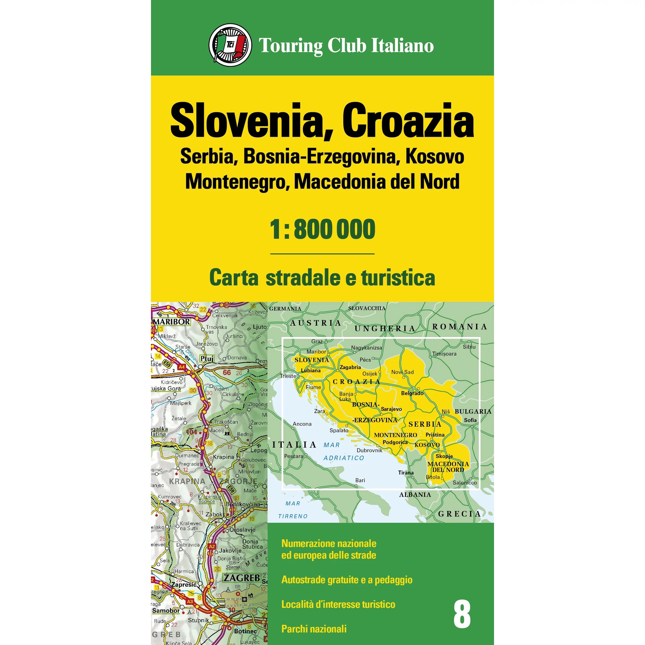 Szlovénia, Horvátország, Szerbia, Bosznia-Hercegovina, Montenegro, Macedonia autótérkép - TCI