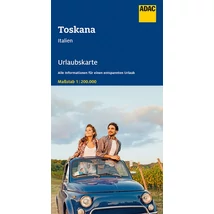 Toszkána tartomány térképe, mely átfogó kiegészítő információkat kínál, beleértve a látnivalókat és a festői útvonalakat is. A térképet a hátoldalon városközpontok térképei, országspecifikus közlekedési és vámszabályok, fontos telefonszámok, valamint a nyaralási célállomáson található baleseti információk egészítik ki. Ezt az átfogó térképet éghajlati táblázat, utazási ellenőrzőlista és gyermekekkel való utazási tippek egészítik ki. Ez teszi az ADAC-térképet a nyaralás elengedhetetlen kellékkévé.