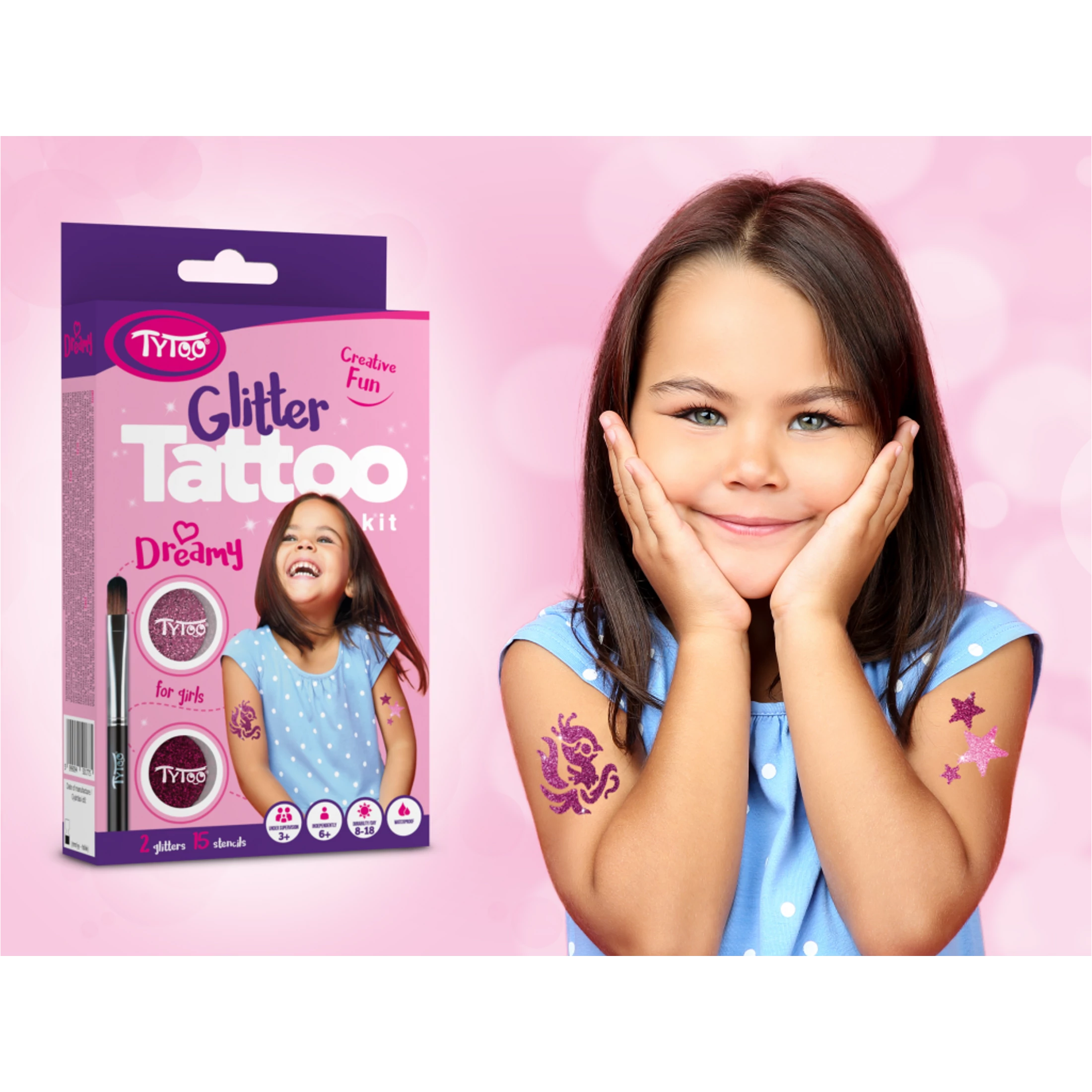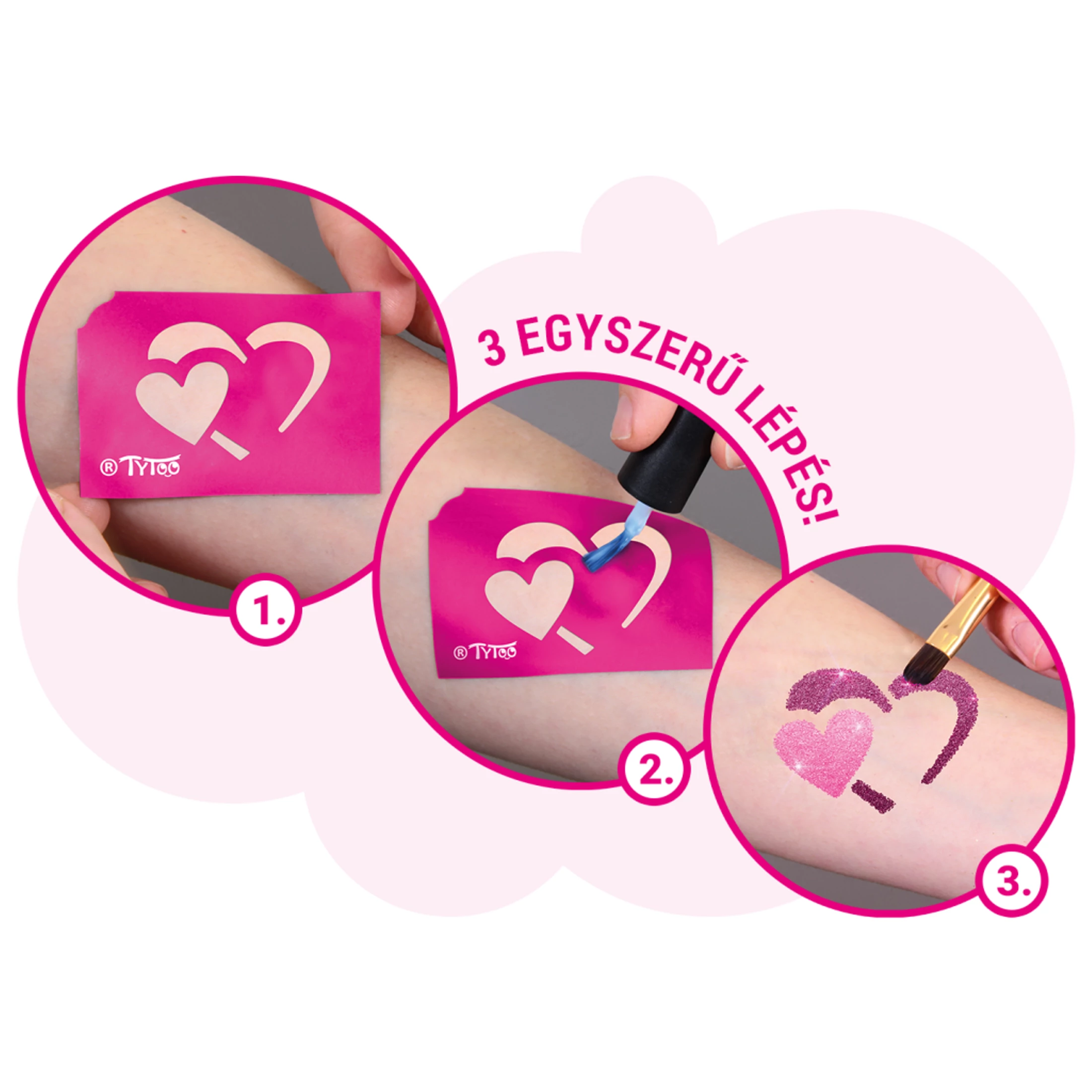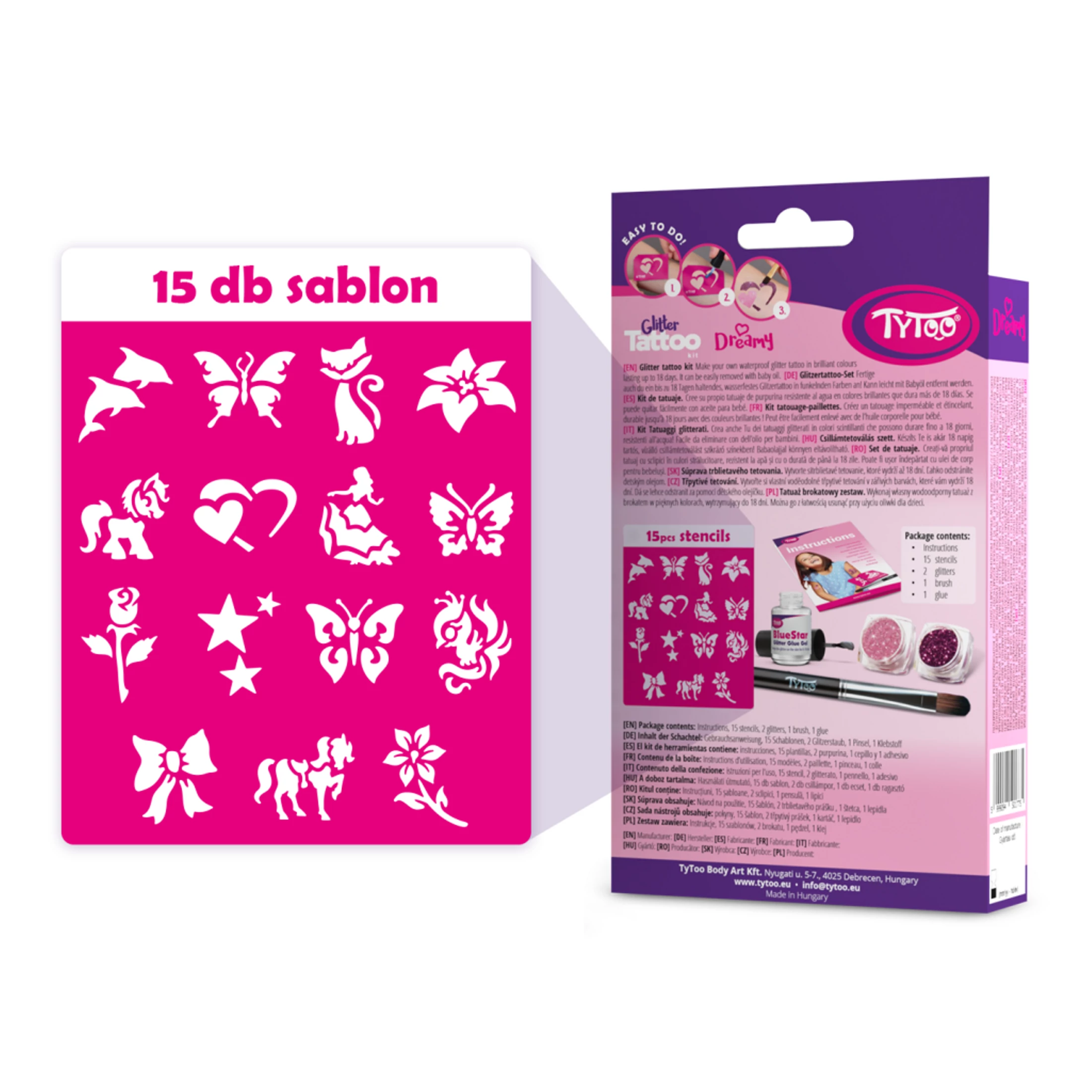 A TyToo Dreamy csillámtetoválás szett tartalma: