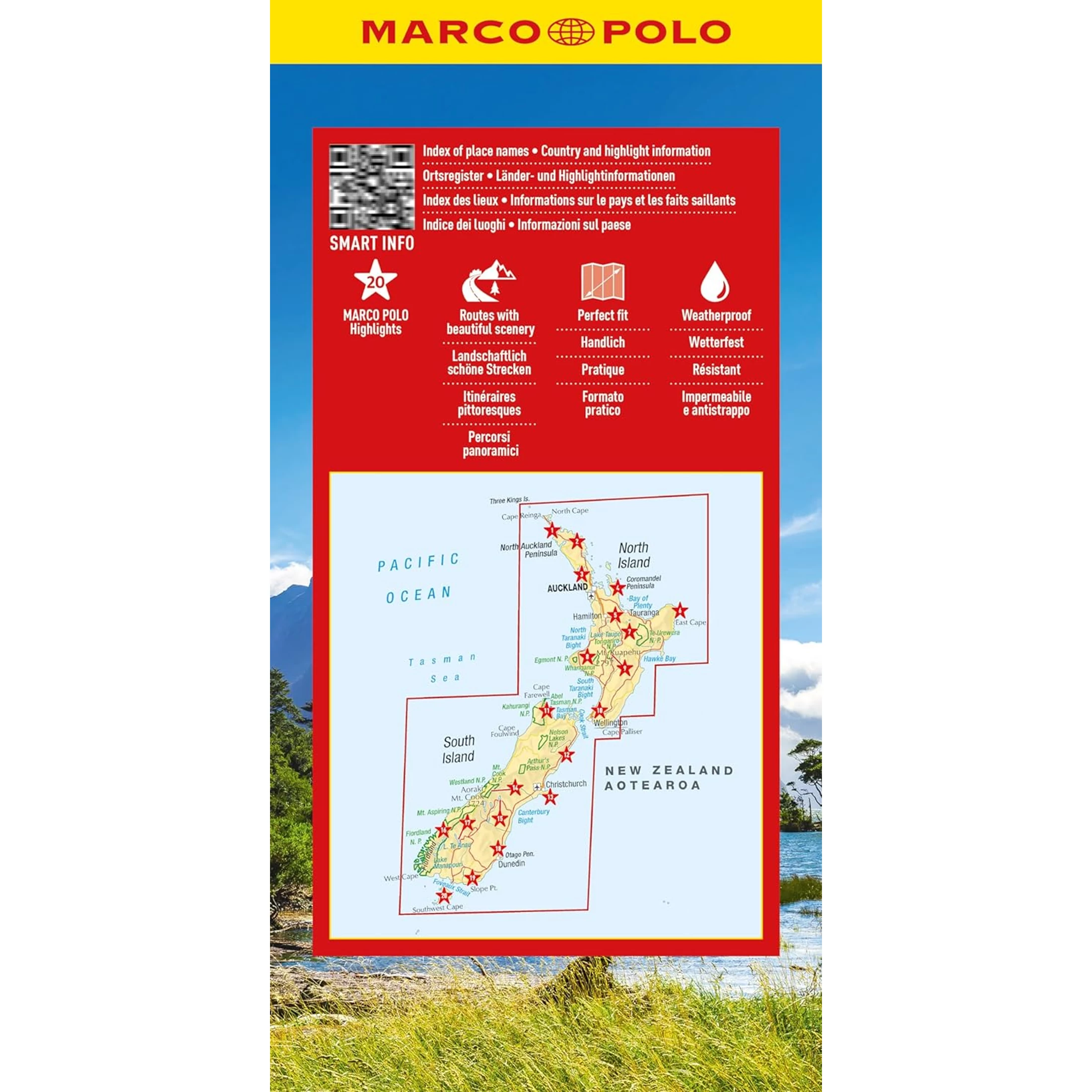 Akár hosszabb utazásra, akár rövidebb kitérőkre indulsz, bízd magad a Marco Polo térkép világos ábrázolására és részletes névmutatójára, hogy eligazodj Új-Zélandon.
