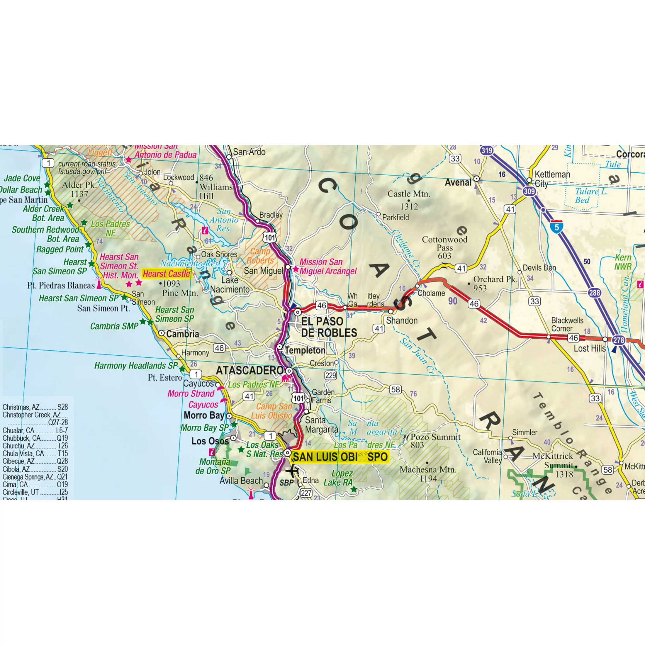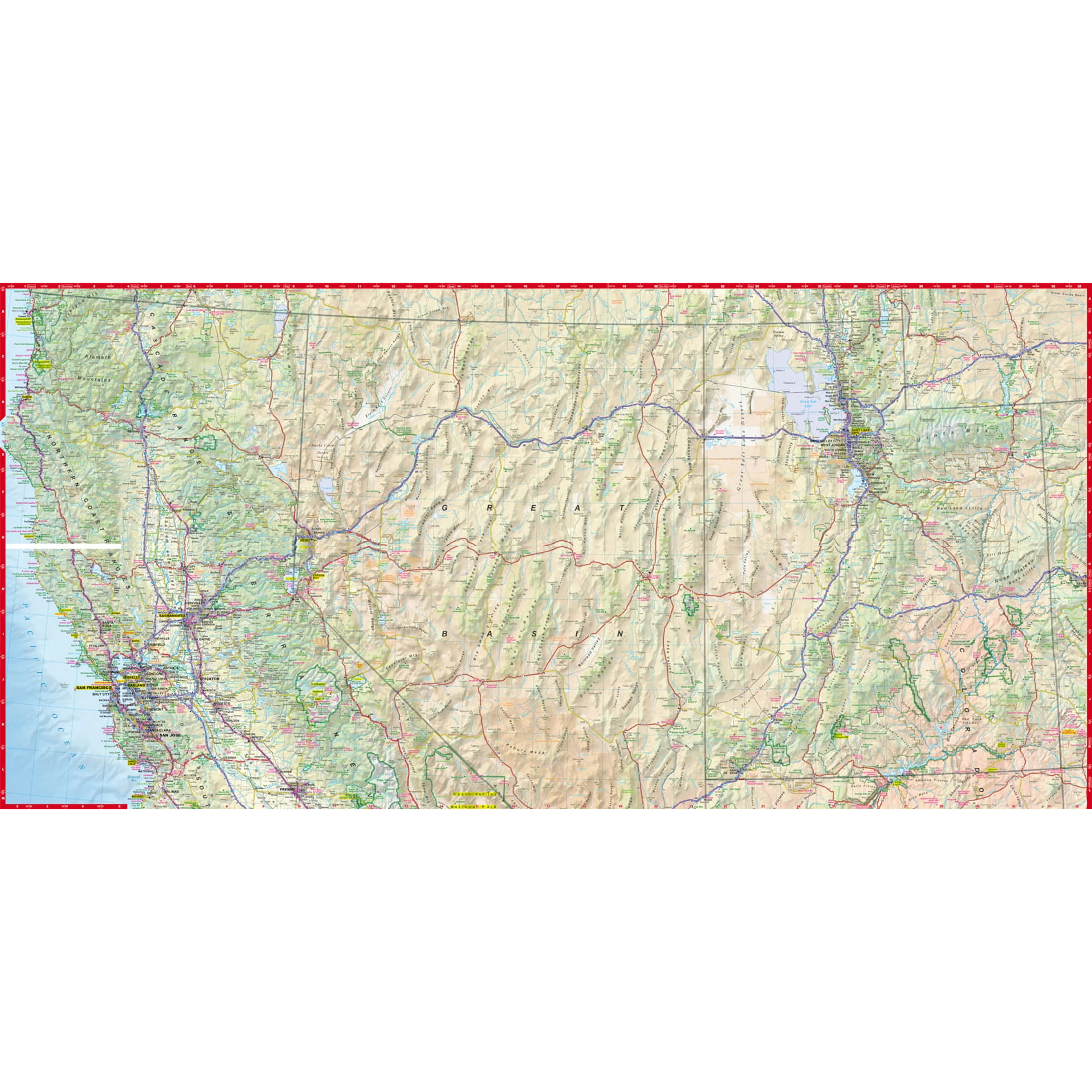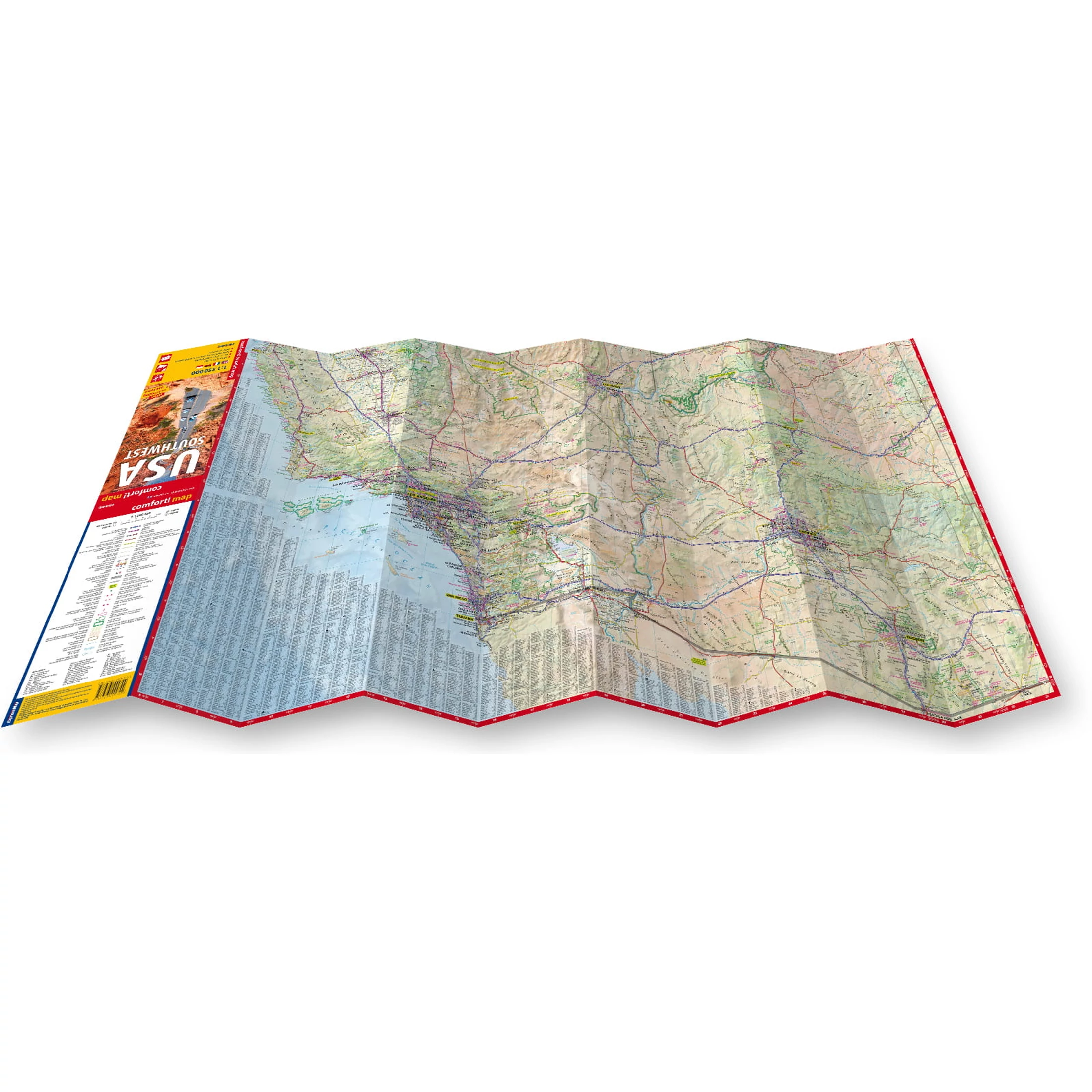 Az USA délnyugati részét 1:1 350 000 méretarányban mutatja be. Kalifornia, Nevada, Arizona és Utah területét öleli fel. Jellemzők: • turisztikai, természeti és kulturális látnivalók, • úthálózat az útszámok feltüntetésével, • közúti távolságok kilométerben, • településjegyzék.