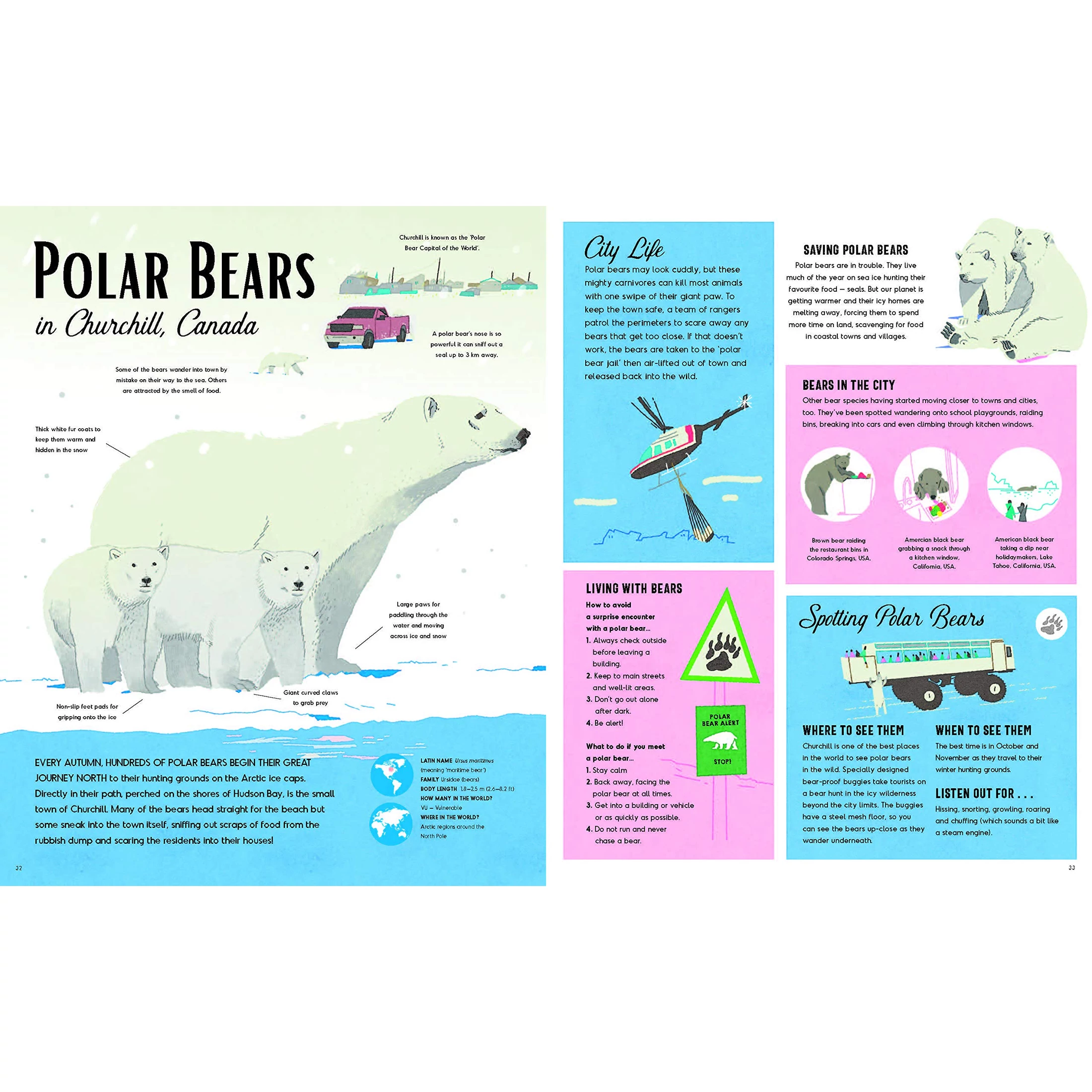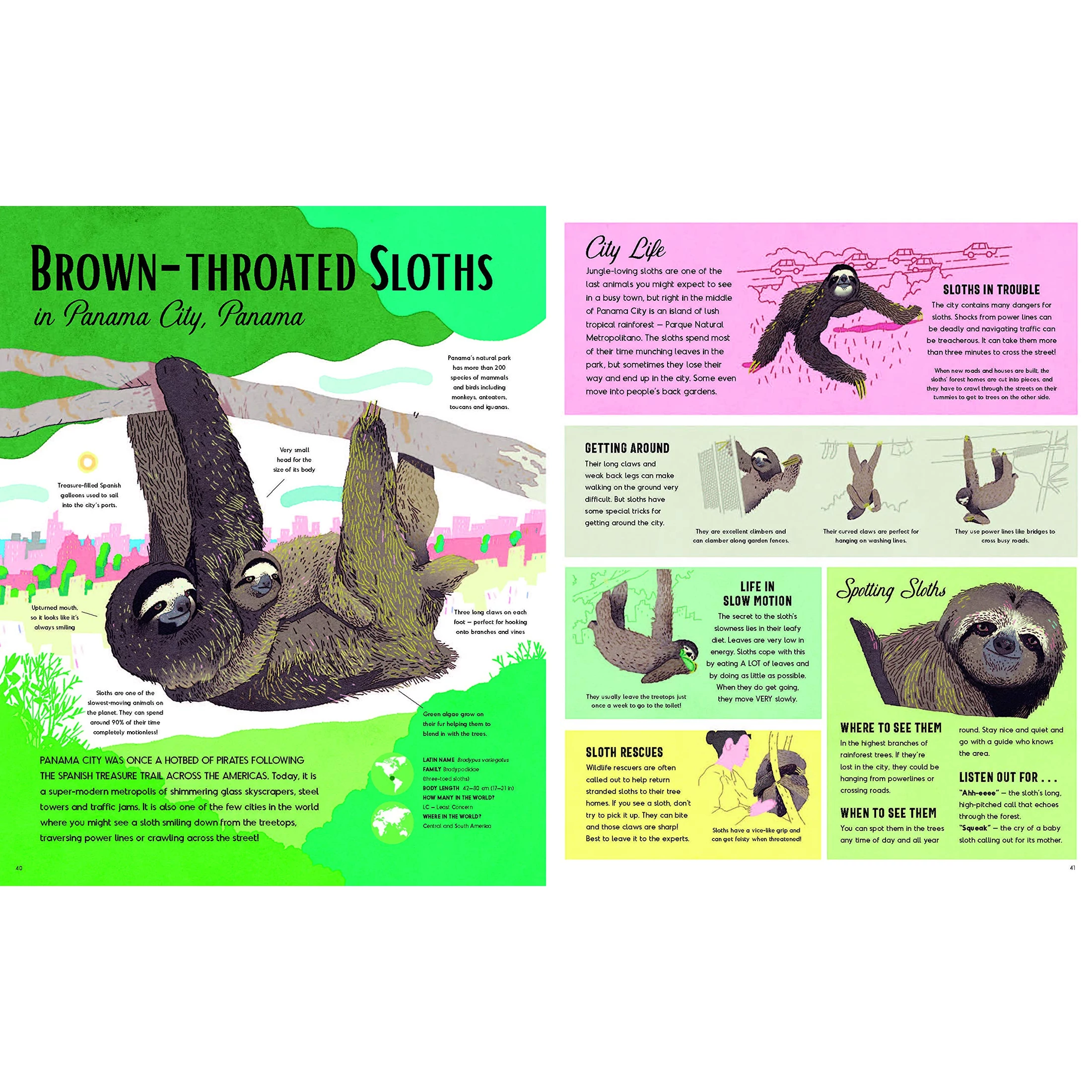 Within these pages, you’ll travel from city to city, across six different continents, meeting just some of these amazing animals. There are tips on where and when you might see them, what signs to look for and how you can help make our cities more nature-friendly places. You’ll also see the conservation status of each animal, from those of least concern to species which are endangered.
