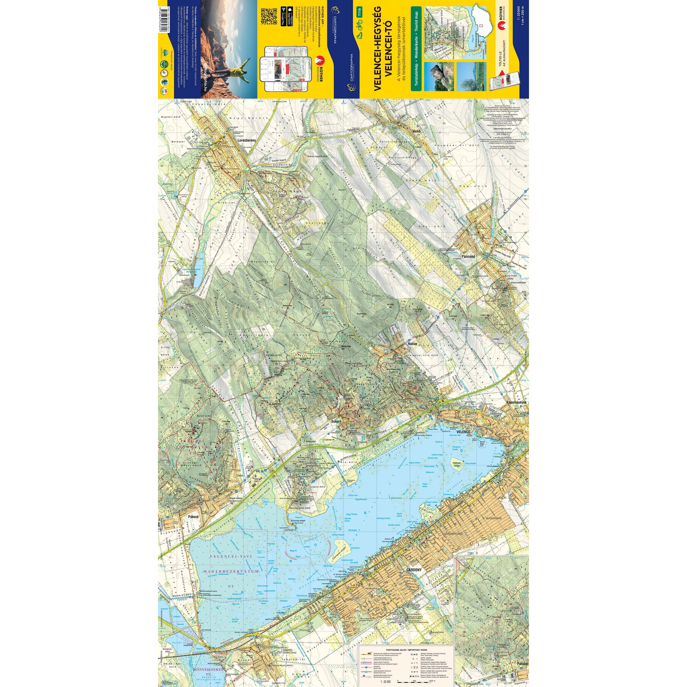 A Velencei-hegység és Velencei-tó 1:25.000 méretarányú turistatérképe gyalogos és kerékpáros természetjáróknak egyaránt nélkülözhetetlen.