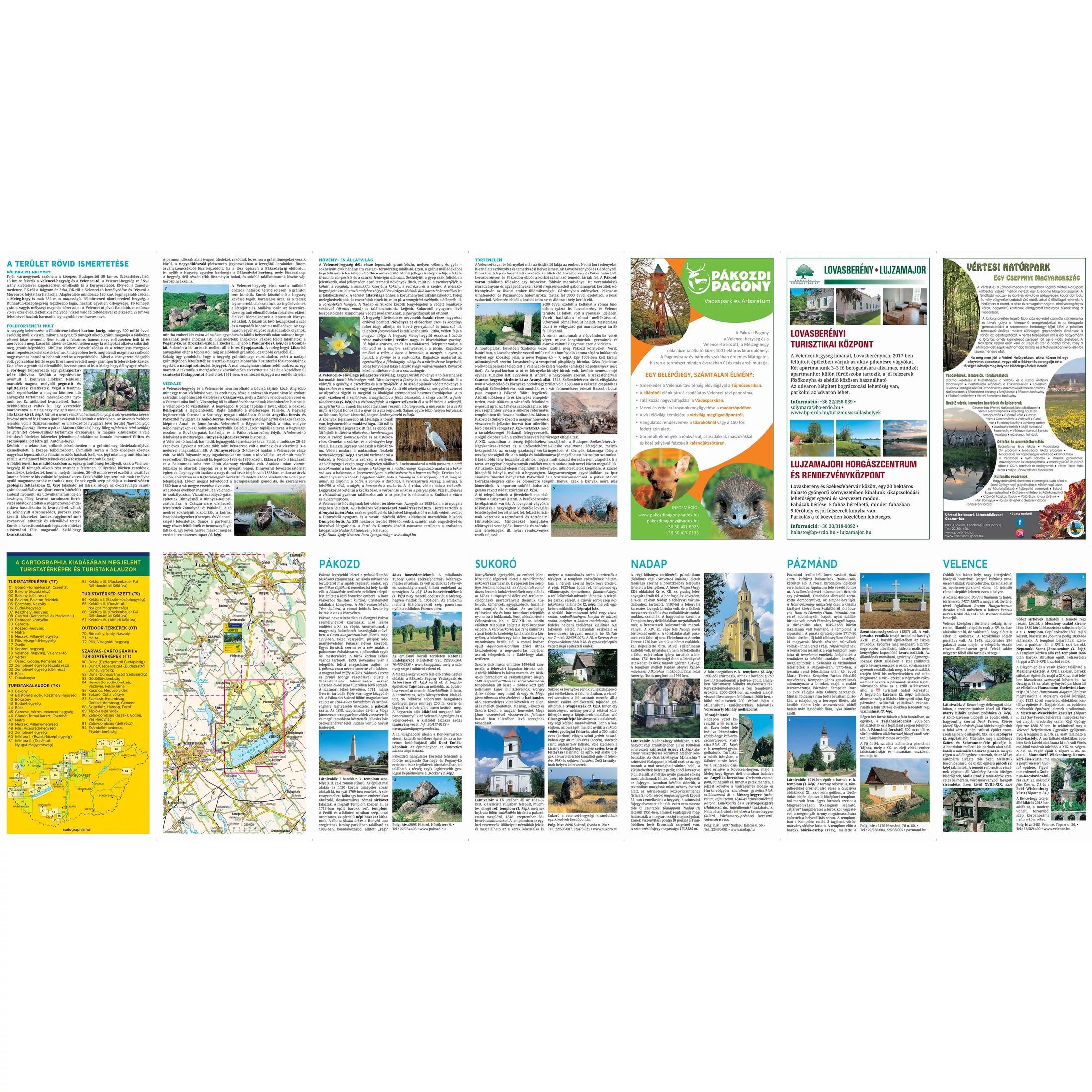 A térképek hátoldala színes településismertetőket tartalmaz, ami segíti a települések értékeinek bemutatását, és a túrázóknak, kerékpárosoknak is támpontot ad a terület látnivalóiról, a fontosabb szállás- és étkezési lehetőségekről.