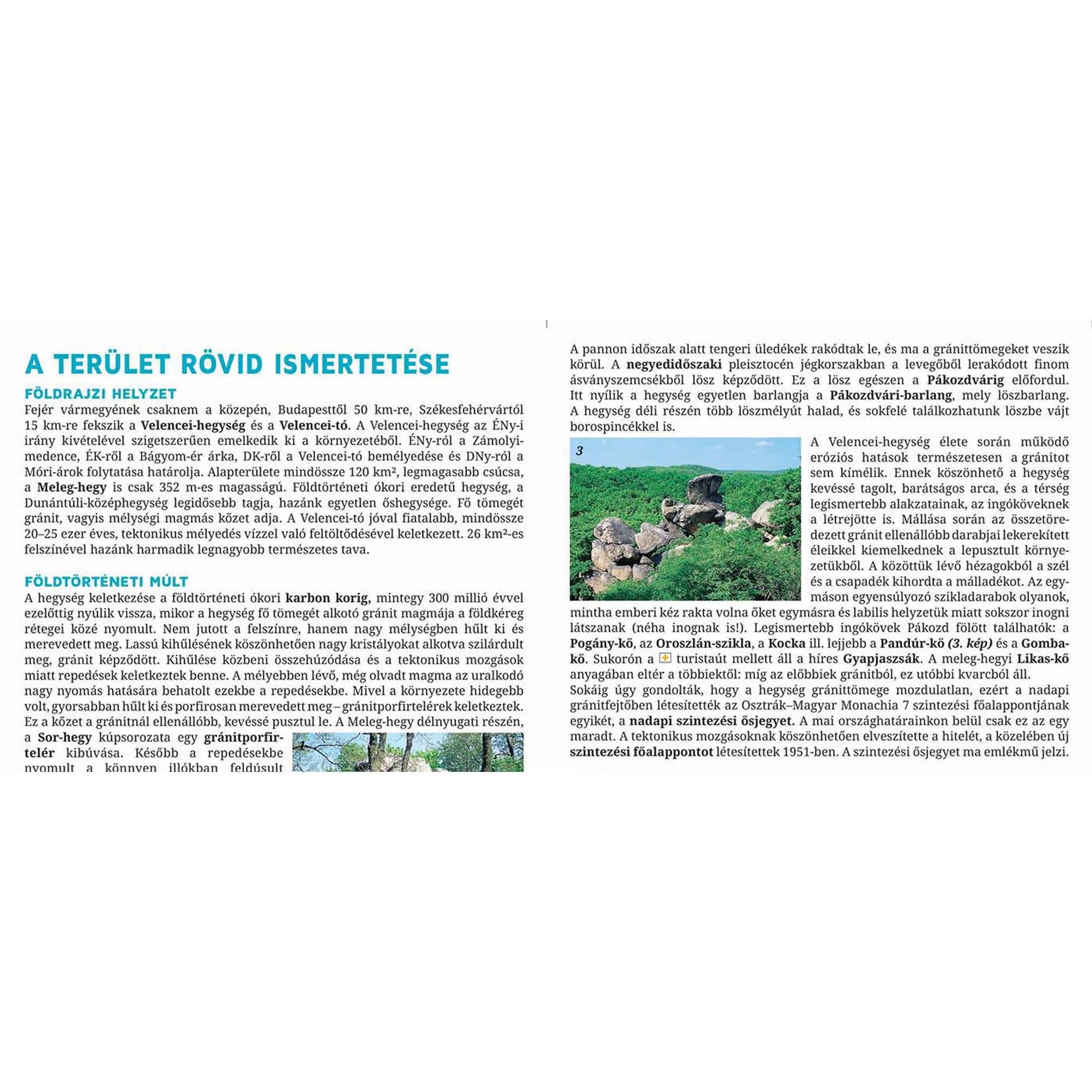 A kiadványban helyet kapott egy rövid szöveges ismertető, amely a terület legfontosabb történelmi eseményeit, földrajzi helyzetét, földtörténeti múltját, vízrajzát illetve, növény- és állatvilágát ismerteti.