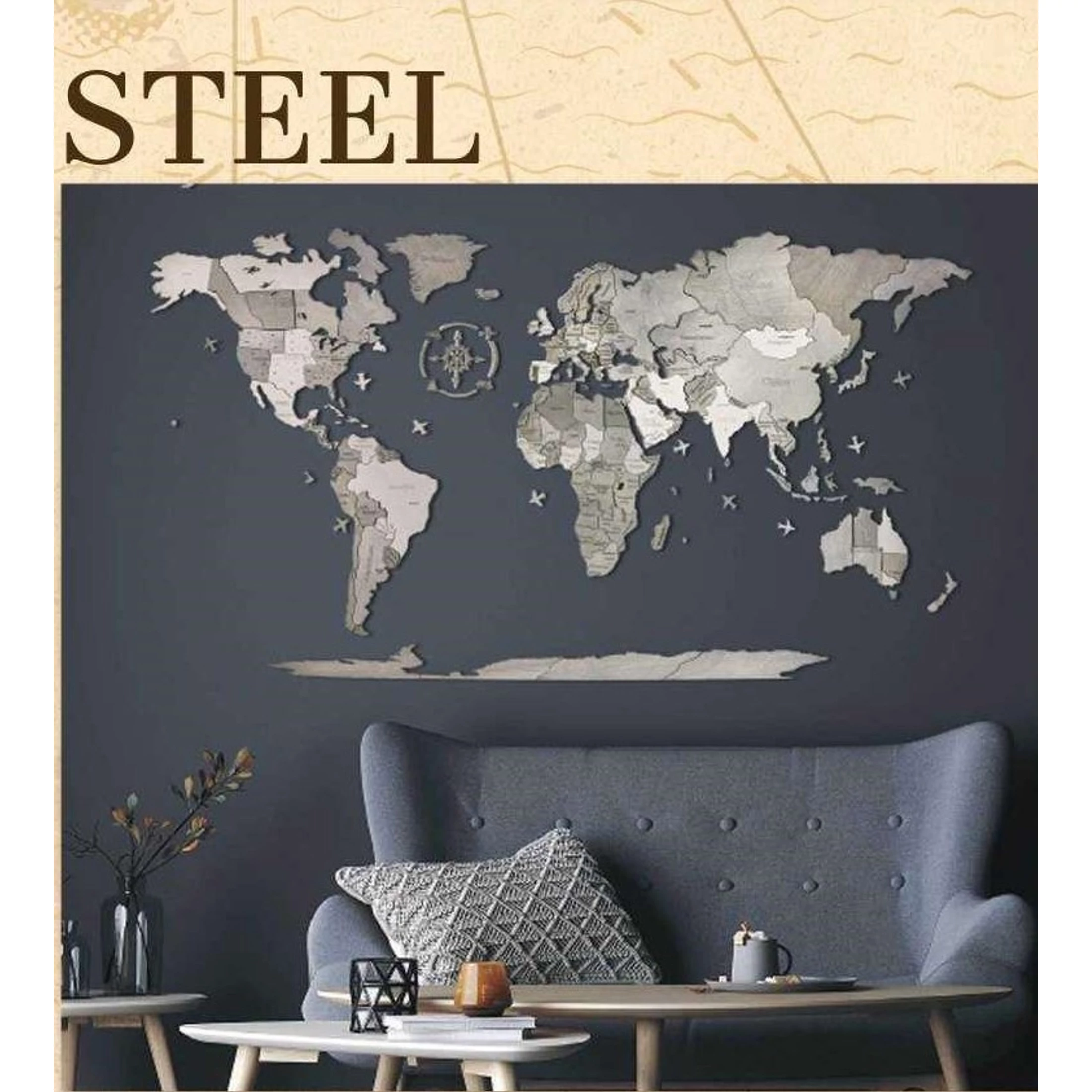 Ez az aprólékos kidolgozottságú, fából készült falitérkép nemcsak egyedülálló dekoráció a falra, hanem egy puzzle kirakós is egyben. Már a felrakása is szórakoztató, 2-3 órás kreatív időtöltés az egész család számára.