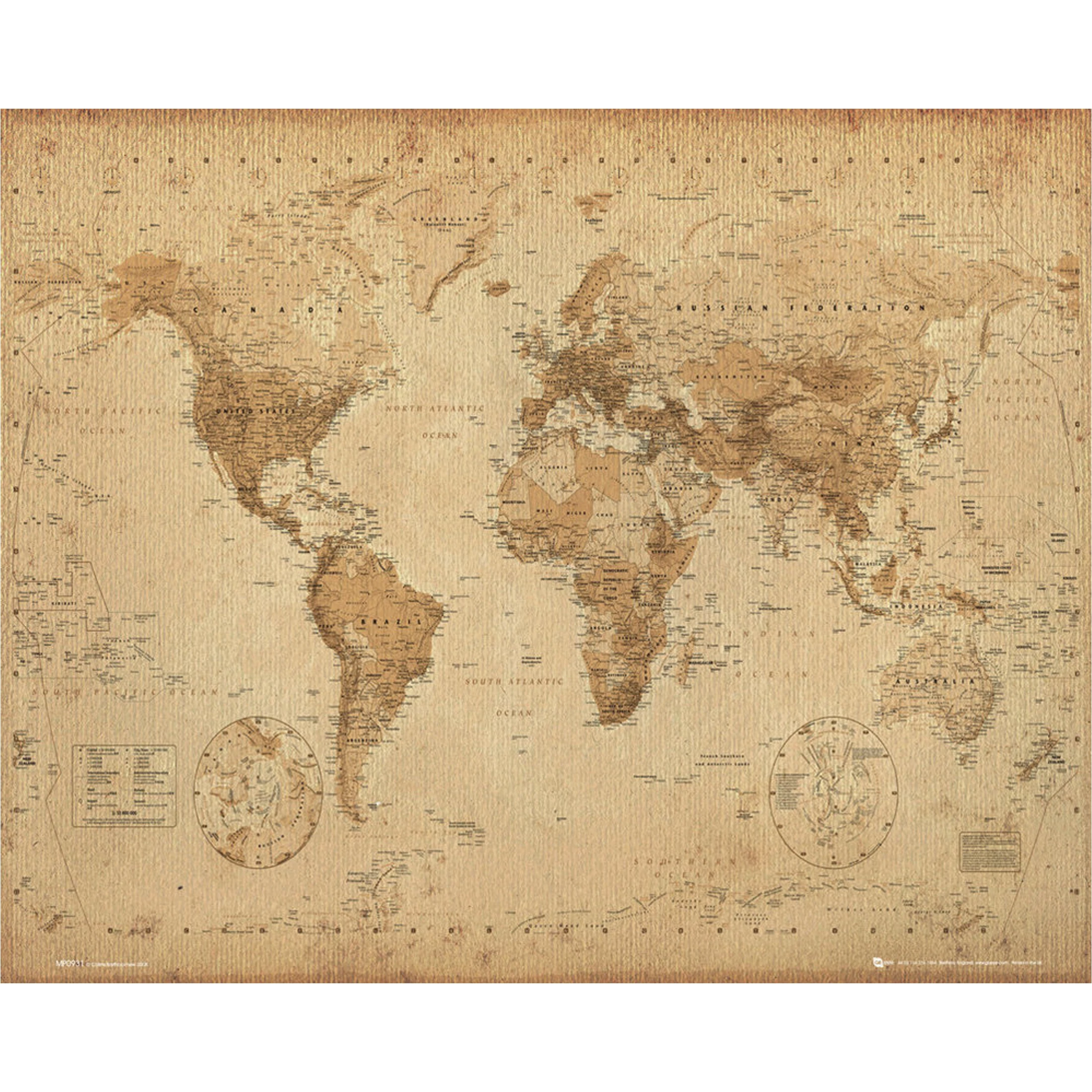 Világtérkép antik falitérkép 91,5x61 cm - választható kivitel