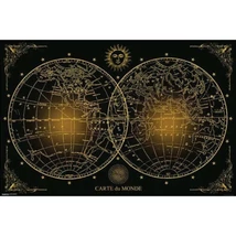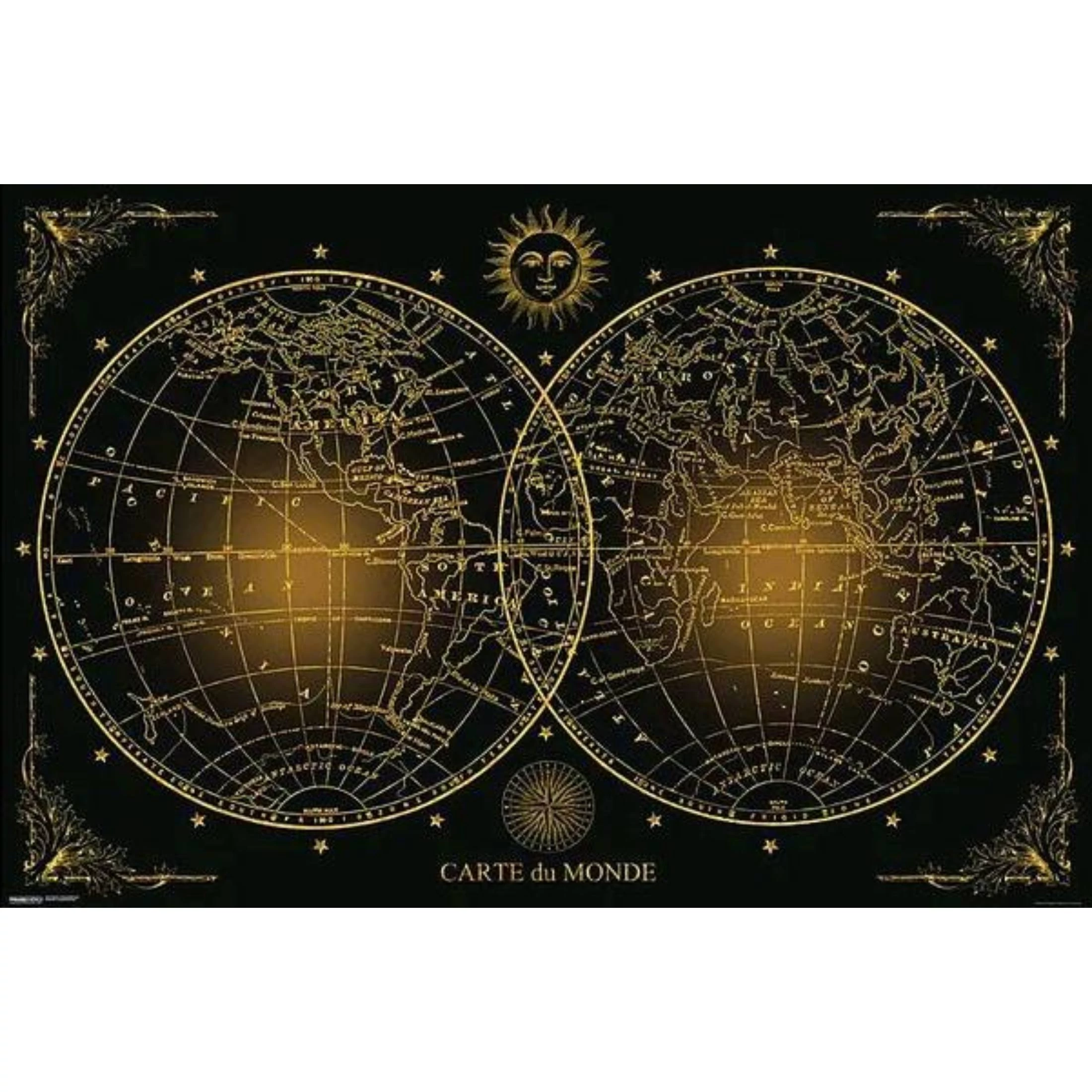 Világtérkép fekete-arany falitérkép 91,5x61 cm - fóliázott ív