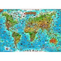 Bájos rajzok - rengeteg információ Földünk élővilágáról, legendás hajósokról, felfedezőkről, földrajzi, építészeti és kulturális nevezetességekről. Minden gyerekszoba hasznos dísze lehet ez a nagy méretű (136 x 93 cm), a világ több országában sikert aratott falitérkép. Fóliázott, alul felül lécezett, falra akasztható térkép gyerekeknek!
