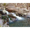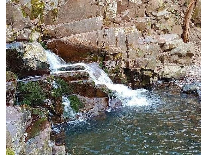 A parkolótól a közforgalom elől sorompóval lezárt keskeny, enyhén emelkedő műúton indulunk. A Bükkös-patak hídja előtt jobbra lépcsősor vezet le a csapadékos időszak után különösen látványos, az andezitsziklákon átdübörgő vízeséshez.