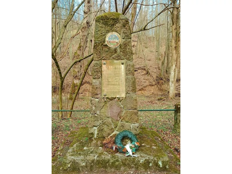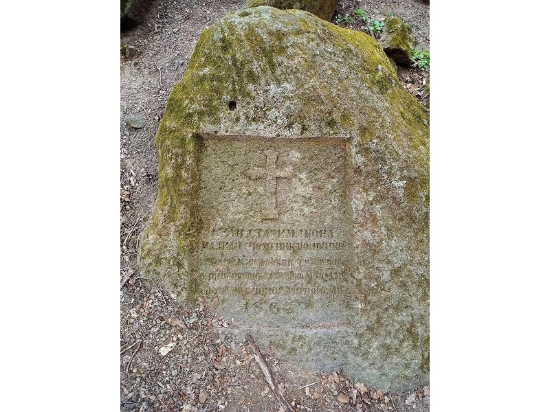 A következő látnivaló a műúttól jobbra nyíló, az egykori kőfejtő komor sziklafalában sötétlő táró bejárata, majd balra tábla hívja fel a figyelmet az 1862-ben állított, szerb feliratú, kereszttel ékesített emlékkőre.