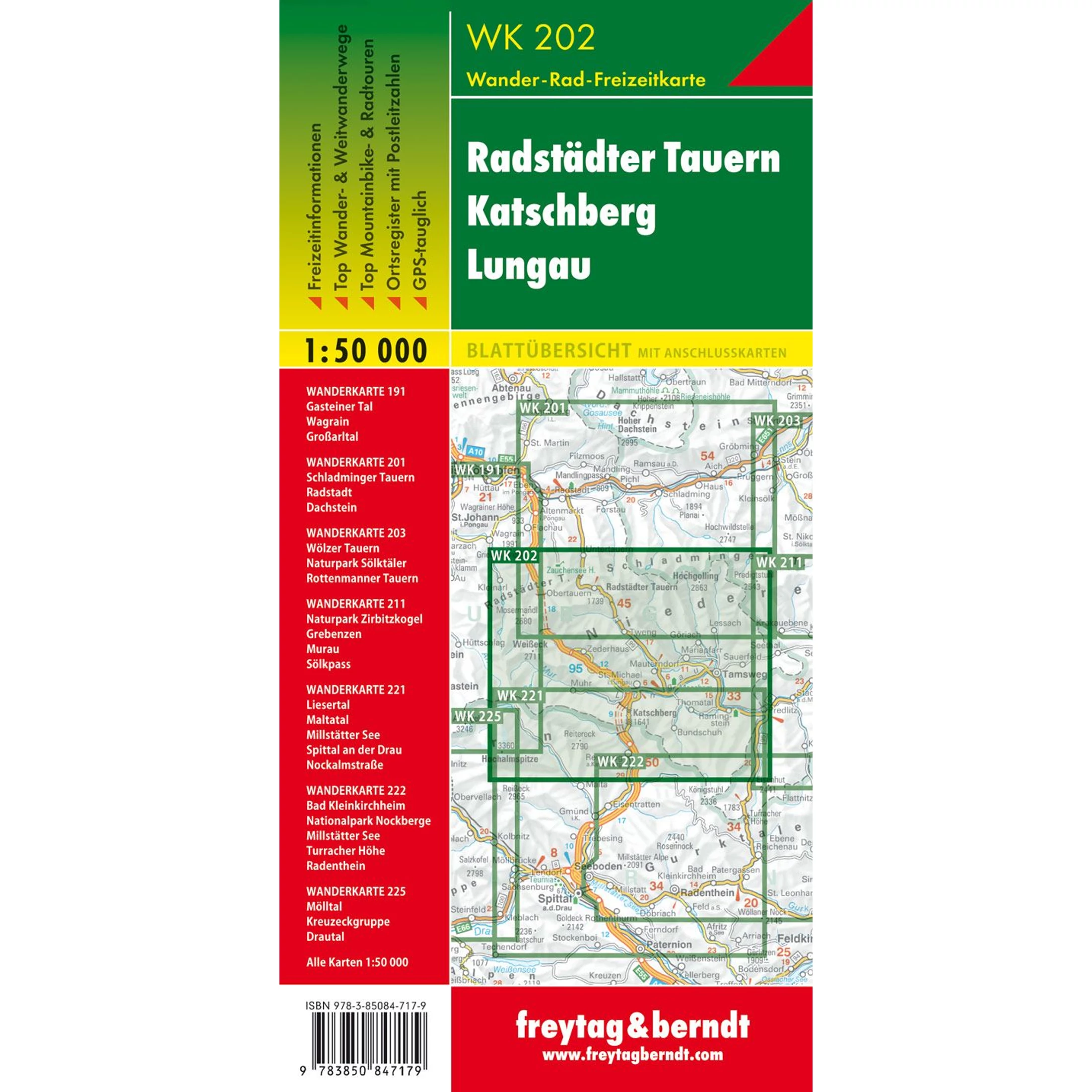 A WK 202 Radstädter Tauern - Katschberg - Lungau 1:50 000 méretarányú térkép, rendszeresen átdolgozott, frissített információkat tartalmaz a túraútvonalakról, kerékpáros és hegyikerékpáros útvonalakról, kunyhókról, természeti emlékekről, kulturális látnivalókról és szabadidős létesítményekről.