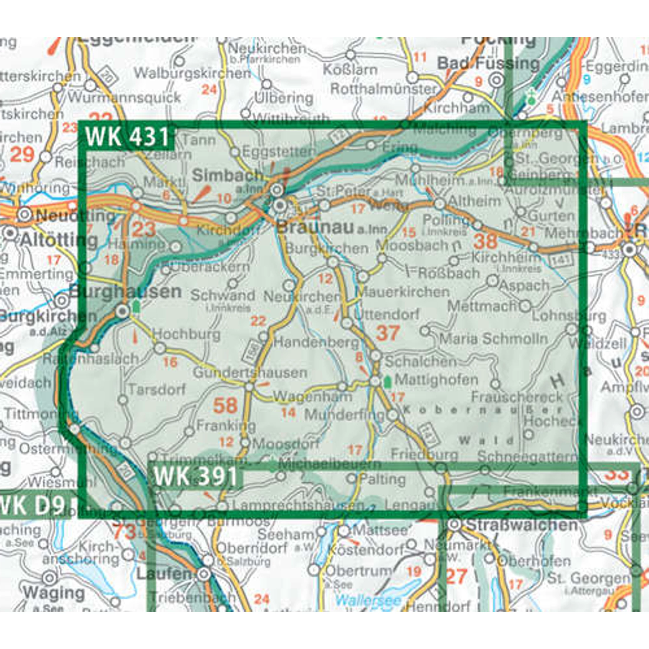 WK431 Thermenregion Innviertel-Ibmer Moor-Kobernaußerwald-Braunau-Burghausen-Marktl turistatérkép - Freytag
