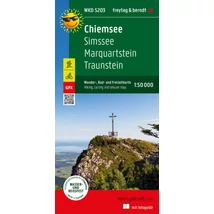 A térkép középpontjában a Chiemsee-tó áll. A parthoz közeli kerékpár- és túraútvonalakon felfedezheti a partot, amelyek a Herreninsel és a Fraueninsel meglátogatásához vezető stégekhez visznek. A zord Chiemgau-Alpokon (több mint 1 000 m tengerszint feletti magasságban) átvezető útvonalak kitartást igényelnek. Más, szintén tematikus útvonalak nyugatabbra vezetnek az Inn folyó mentén vagy a tótól északra fekvő dombvidéken keresztül. Az információs részben megmutattja, hogy milyen kirándulások állnak rendelkezésre ebben az üdülőrégióban.