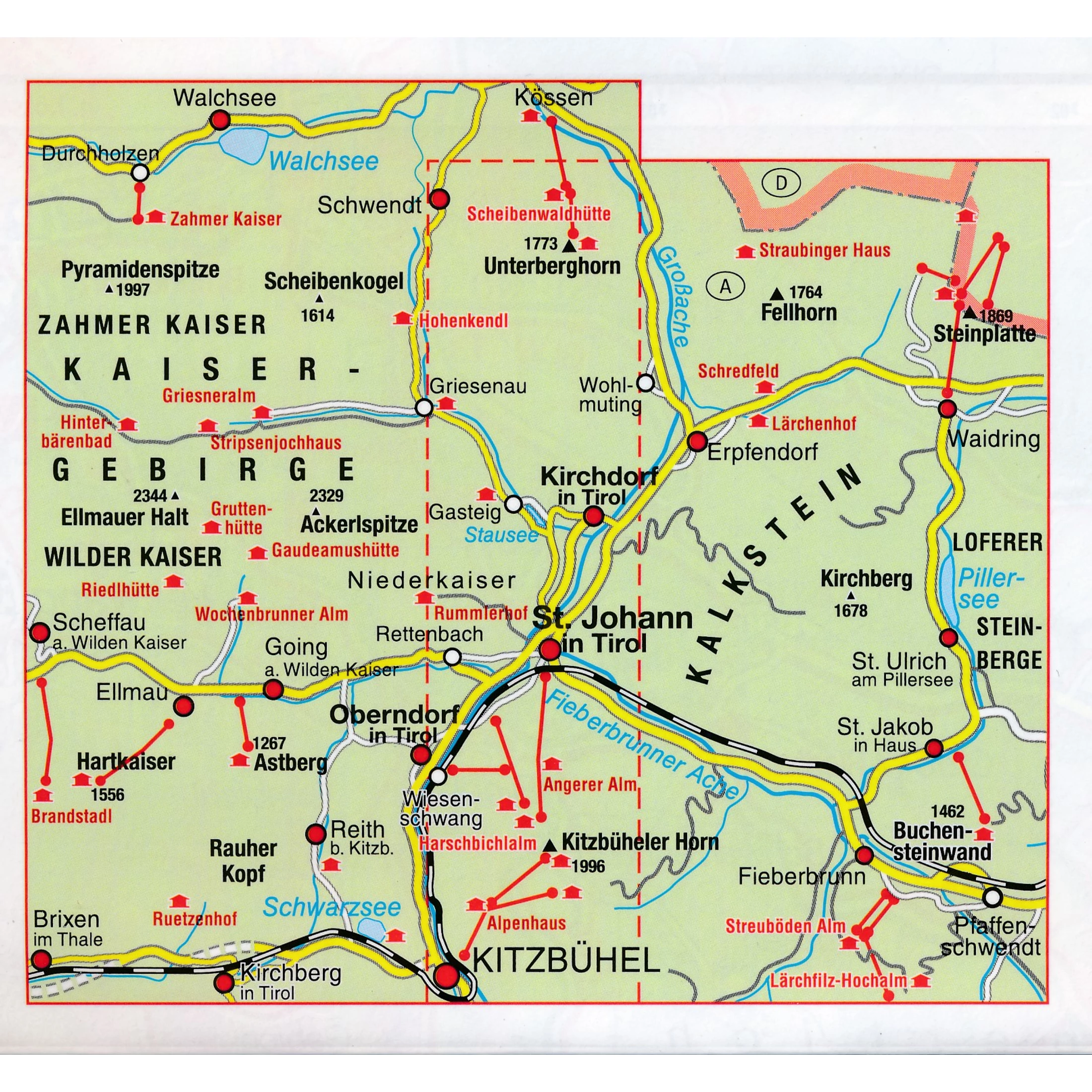 Helyek/hegyek/tavak: Kitzbüheler Horn, Wilder Kaiser, Kitzbühel, Walchsee, St. Johann in Tirol, Fieberbrunn, Waidring, Ellmau, Pillersee, Zahmer Kaiser, Kirchdorf in Tirol, Unterberghorn, Fellhorn, Erpfendorf, Scheffau, Stripsenjoch.